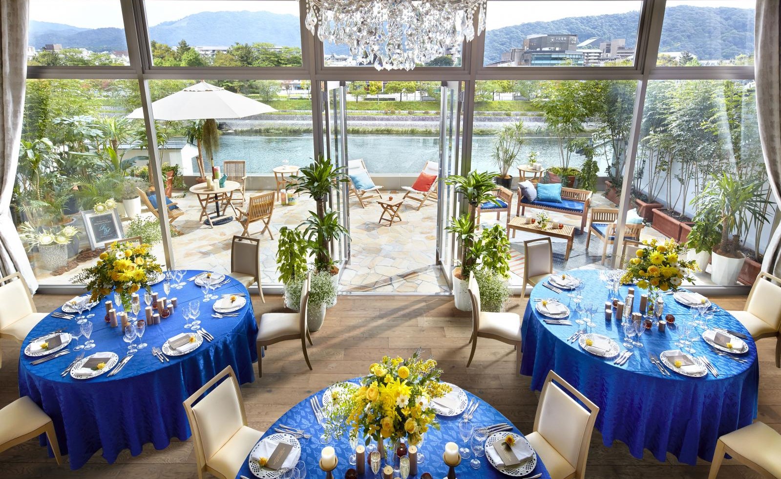 鴨川沿いの会場から眺める四季折々の絶景に、そこで働くスタッフも自然と笑顔が溢れます。