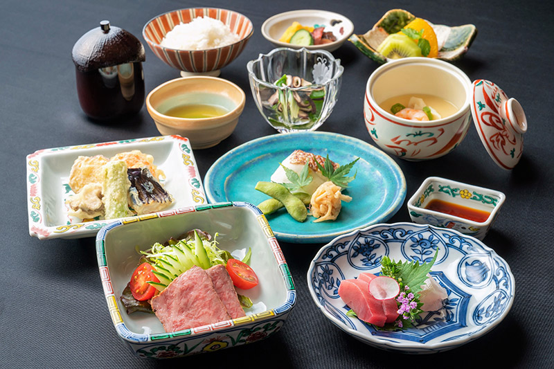 美しい庭園、和の趣をたたえながらしっとりとたたずむ「千寿閣」、京の食文化を今に伝える料亭ならではの雅な懐石料理、京懐石を提供しています。